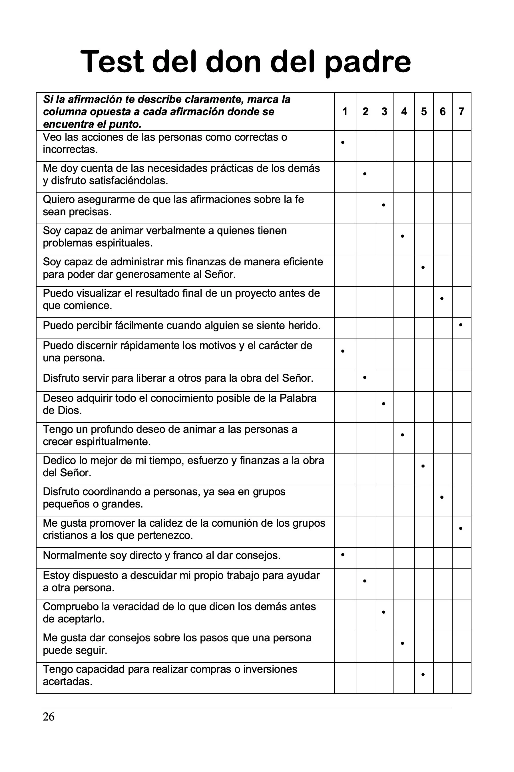 Los nombres alternativos entre paréntesis no son nombres bíblicos, sino que se han añadido para ayudar a comunicar el propósito de los dones.